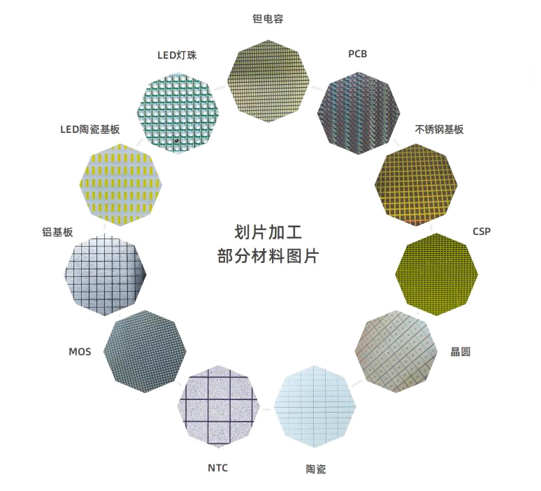 公司提供代加工服務(wù),配有專業(yè)工藝開(kāi)發(fā)技術(shù)團(tuán)隊(duì),擁有1000m以上潔凈車間,可切割產(chǎn)品包括:各種IC、PCB.OFN、陶瓷基板、光學(xué)玻璃、鈮酸鋰、銻化鉍、貼片電容和電阻、碳化硅、氮化鎵等半導(dǎo)體器件及芯片,目前在泛半導(dǎo)體領(lǐng)域已積累了超50類材料、數(shù)千種產(chǎn)品劃切工藝數(shù)據(jù)庫(kù),可為客戶提供高效率、高質(zhì)量的劃片代工服務(wù)。