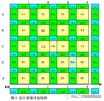 將一個Reticle從晶圓中取出,用英文字母A、B、C…來代表芯片在Reticle中所處的行號,而用數(shù)字1、2、3…代表芯片在Reticle中所處的列號,每一個芯片在一個Reticle中就可以被唯一地標示。如A1、B3等。在每一個芯片的四周有4條邊和4個頂點,如果用A1T(A1 Top)代表A1芯片上方的街區(qū),A1L(A1 Left) 代表A1芯片左邊的街區(qū),CA1(Corner A1)代表A1芯片左上方的街區(qū)交叉部分。這樣,整個晶圓的切割質量就可以通過一個Reticle內XT、XL、CX(X代表芯片的坐標)的切割狀況表達清楚。這個質量評估矩陣的另外一個優(yōu)點是可以很方便地在晶圓上找到一個具有特定測試圖案的芯片并觀察其切割質量。也可離線對某個測試圖案及其切割質量進行分析或改進。在此之前,需要經驗和技巧來確定一個Reticle。