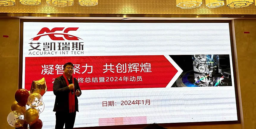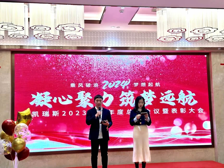 在2023年度總結(jié)視頻播放后,艾凱瑞斯公司總經(jīng)理龔勝發(fā)表了“凝智聚力,共創(chuàng)輝煌”主題講話,對(duì)全體員工在過(guò)去一年中的辛勤付出表示衷心的感謝,也對(duì)未來(lái)一年的工作提出了更高的要求和期望。